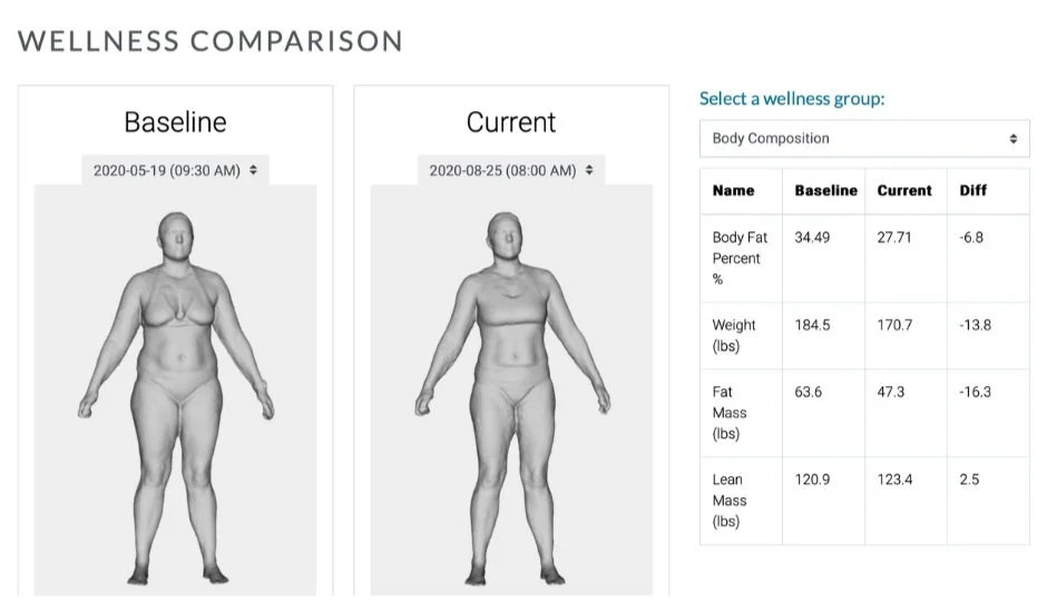 Want to know how your fitness plan is paying off? Our Fit 3D body scans offer precise, data-rich insights into your health journey, including detailed body composition data. The Fit 3D body scan uses 3 built-in scanners and advanced technology to accurately calculate your weight, body fat percentage, muscle mass, and fat mass.